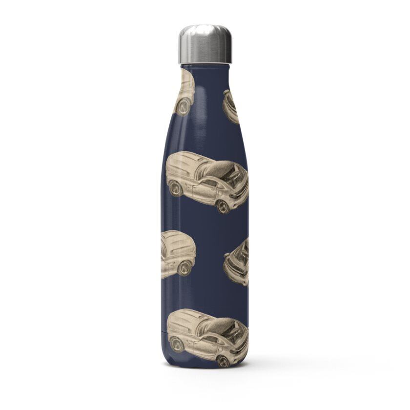 水筒 ステンレスボトル 保冷 保温 真空断熱 (鉛筆画 車)ネイビー