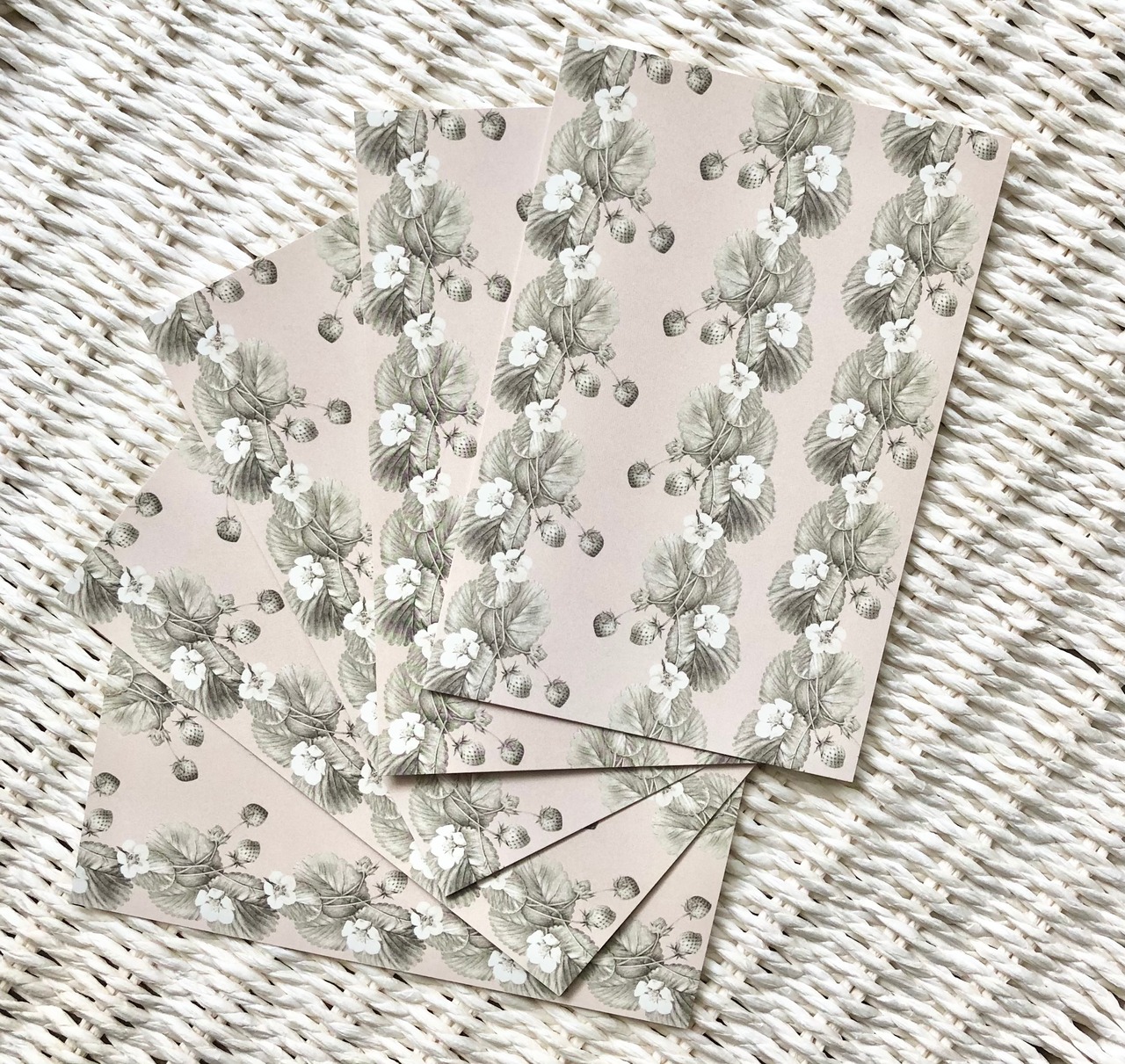 メッセージカード(鉛筆画 白いちご)パステルピンク 20枚セット