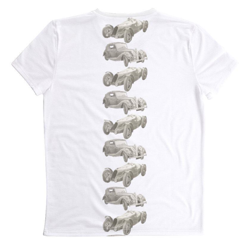 Tシャツ(鉛筆画デザイン クラシックカー①②)ホワイト